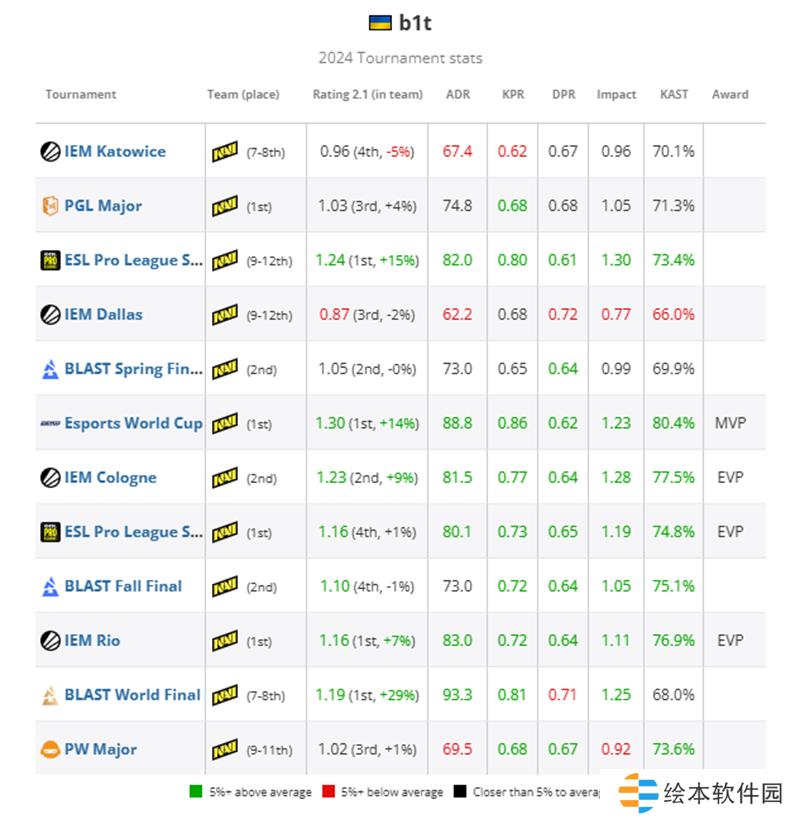 Natus Vincere在 2022年仅赢得了一项赛事——BLAST春季总决赛,但在Boombl4离队前,他们依然表现出色,分别在PGL 安特卫普 Major和IEM科隆站中获得亚军。而b1t在这几项赛事中均获得了 EVP。
