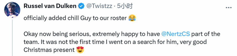 Russel Van Dulken | Twistzz:正式把冷静哥(Guy是NertZ的名字)纳入我们阵容啦。