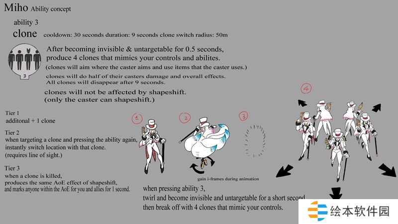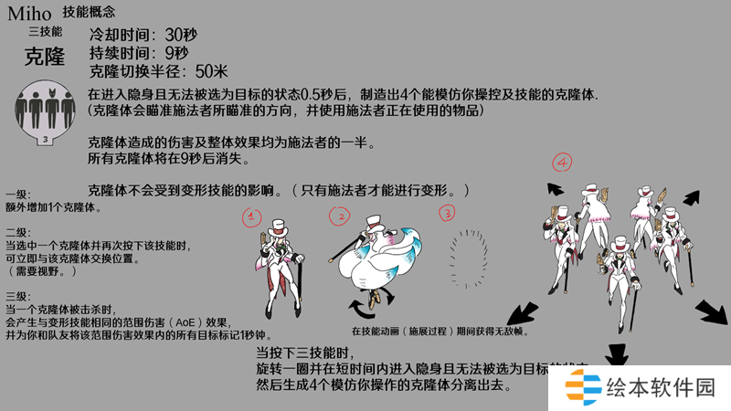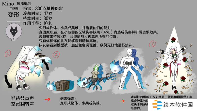 因为这个角色是基于魔术师和艺人,我认为英雄在四处走动时有表演技巧是最重要的。