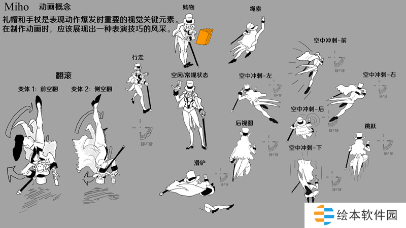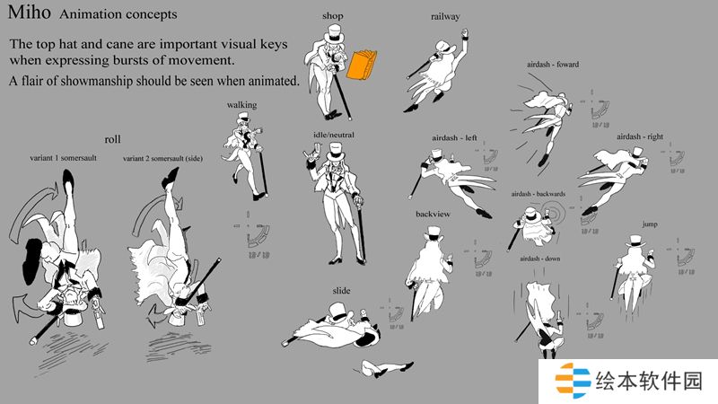 手杖和高顶礼帽可以作为强调移动爆发的很好方式。