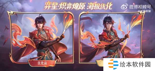 弈星的史诗皮肤炽弈燎原优化了海报,主要体现在两个地方,一个是站姿,原来的站姿是面朝大家,优化后变成了侧着朝大家,这一站姿的改变,让弈星的气质发生了改变,这种气质的变化娜娜也说不出来变在哪里,反正就是更帅气了。
