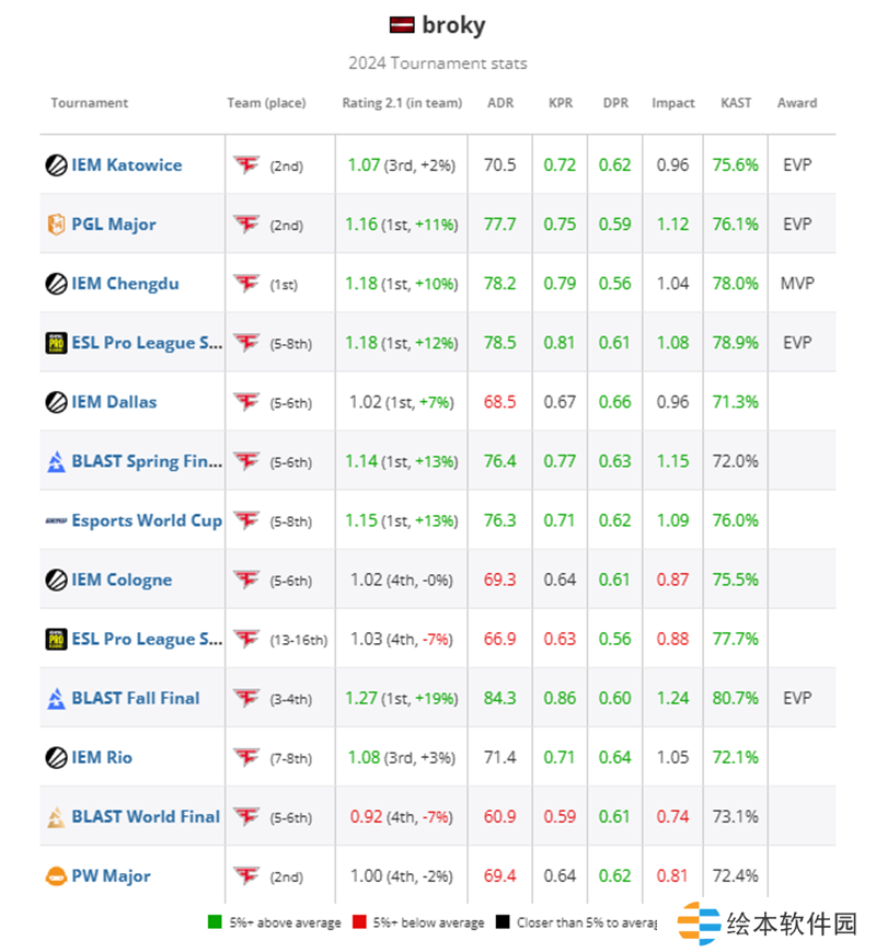 最终,尽管FaZe表现出色,但donk率领的Spirit依然过于强大。broky在总决赛中打出了0.99的rating和76的ADR,成为FaZe队内第三高选手,使他的淘汰赛平均rating达到出色的1.11。