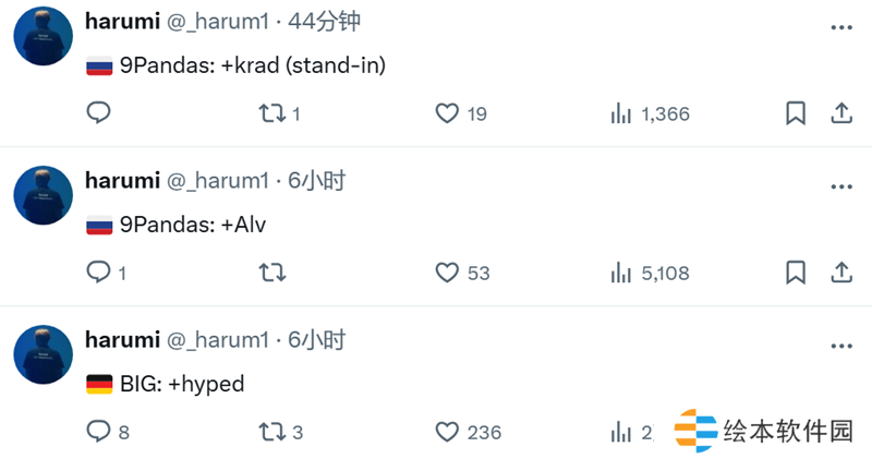 此外harumi还爆料了关于9 Pandas战队阵容的相关讯息。根据他的爆料,9 Pandas战队将会招入两名选手,分别是Alv和Krad。其中Krad将以替补身份加盟战队。Alv是19岁的小将,当前效力于HLTV世界排名114的