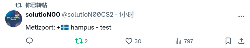 今天早上,爆料人solutioN00在社交平台上透露Metizport正试训hampus。