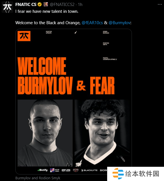 今日fnatic俱乐部于官推宣布签下fear和Burmylov。