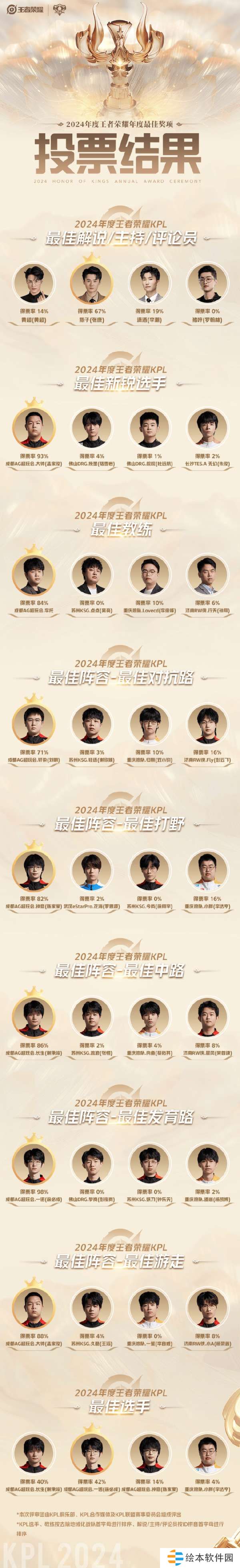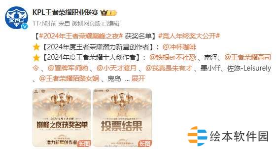 KPL公布巅峰之夜各奖项投票比重:最佳选手一诺微弱领先长生
