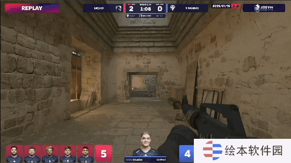 双方互换阵营,NertZ手握p250拿到首杀,r3salt正门击杀包匪Twistzz后被NertZ击杀,d1Ledez的usp找回两个人头,最后Alv用刀击杀了子弹打空的jks,手枪局9 Pandas收下。