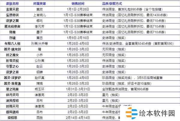 上官婉儿-妄想奇谈、夏洛特-浮生妄、哪吒-逐梦之翼、李元芳-匿光侦察者、墨子-降魔:1月1日-S38赛季结束