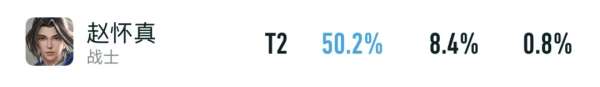 以上则是赵怀真目前的巅峰赛数据,50.2%胜率+8.4%出场率,已经能排在辅助榜的中游位置了。
