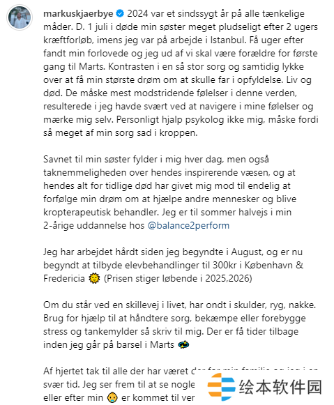 Kjaerbye宣布孩子即将出生 发表长文感叹并分享人生近况