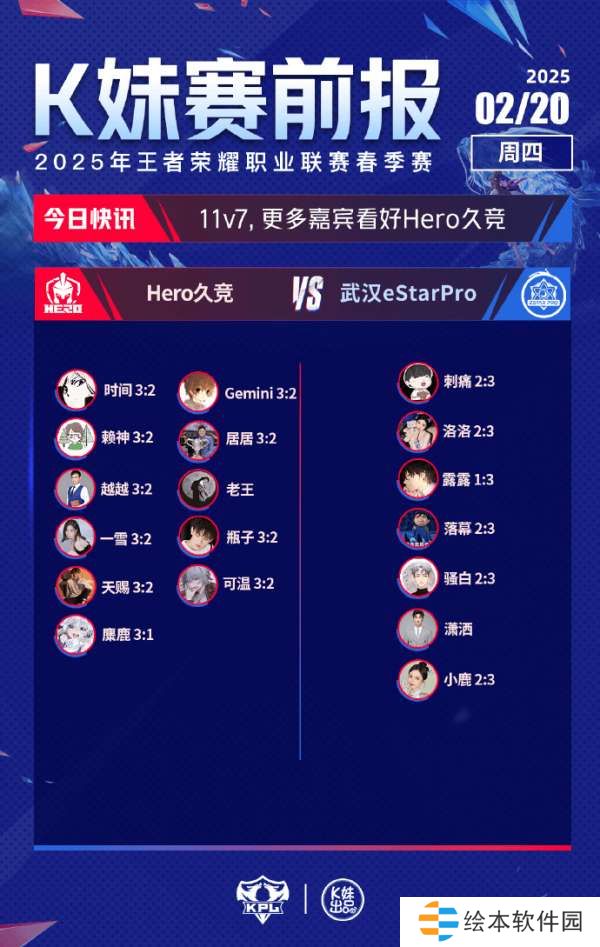 Hero对战eStar :11v7,更多嘉宾看好Hero久竞;