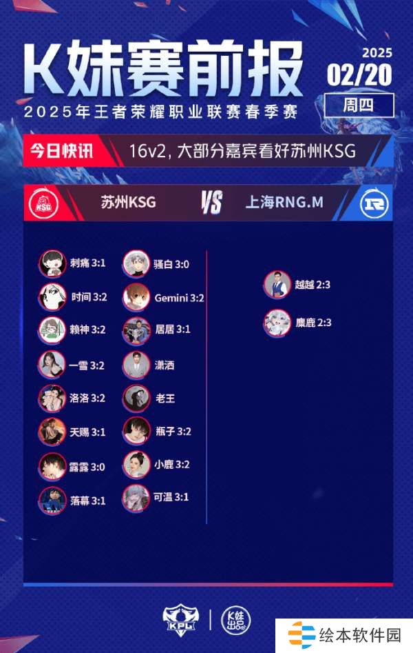 KSG对战RNGM : 16v2,更多嘉宾看好苏州KSG。
