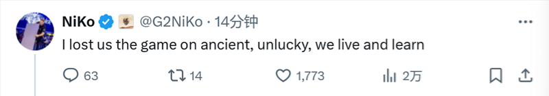 MOUZ-Falcons赛后动态 NiKo:输Ancient责任在我