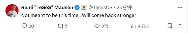 René Madsen | TeSeS:这次没能如愿……但我会以更强的姿态归来。