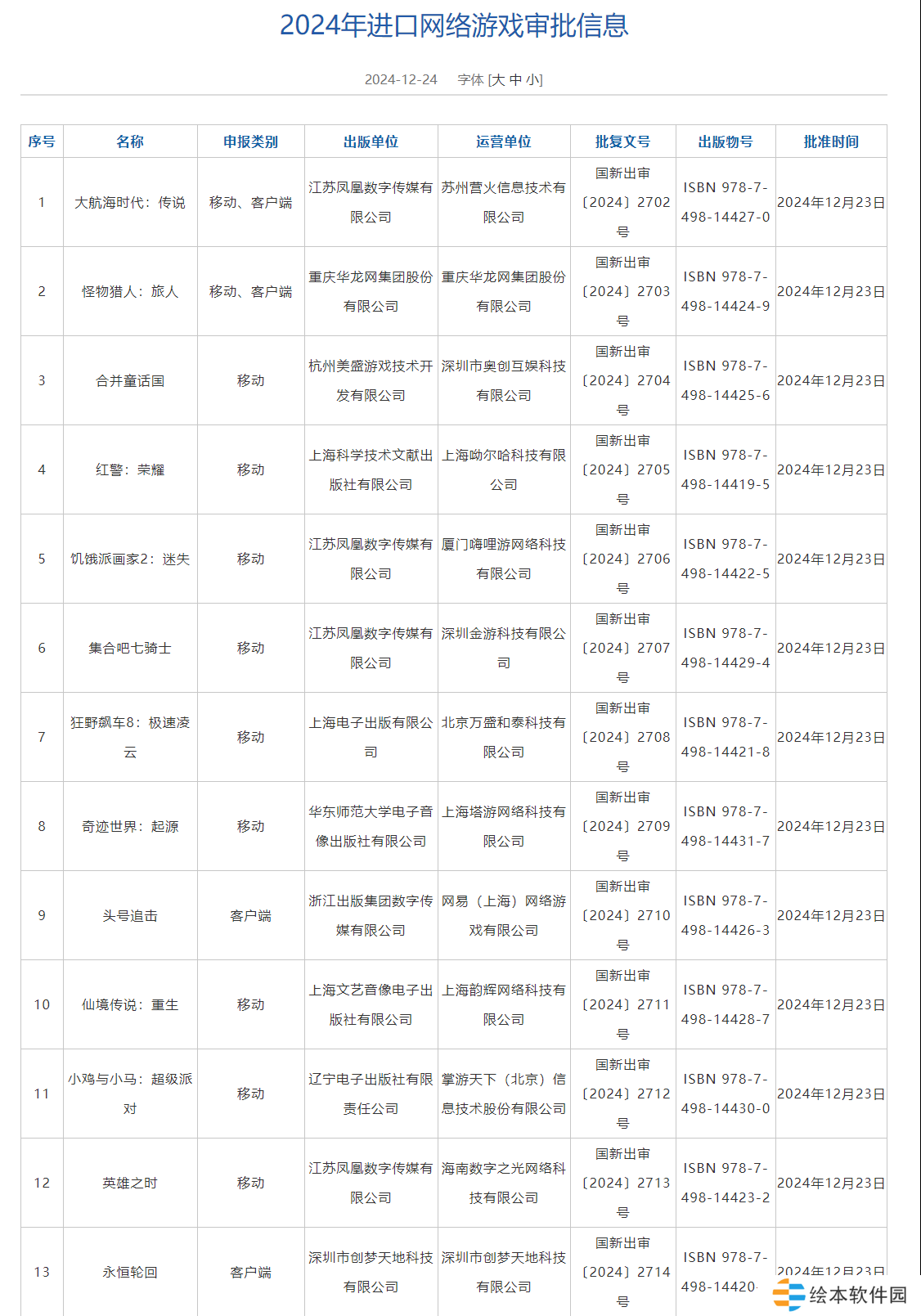 最新12月国产、进口游戏版号已正式发布!让我们一起来看看都有哪些大家期待已久的作品过审吧!