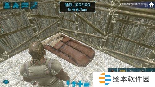 最后再把睡袋放入茅草房中(睡袋可以让我们快速度过夜晚),这样一个简易的茅草房就完成了。