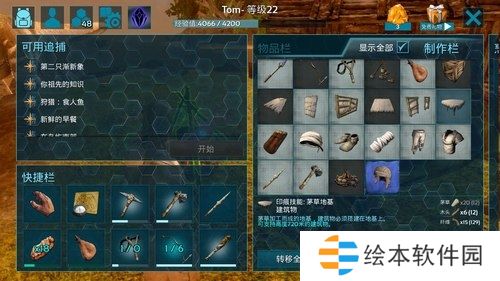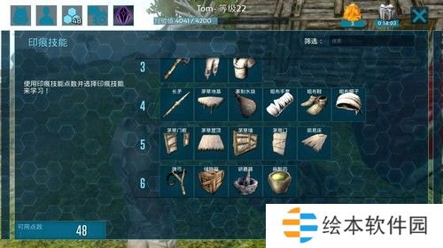 学会了驯养宠物,接下来就是想办法快速提升下等级,解锁更高级的印痕技能。这阶段建议大家可以去再去击杀一些较弱的生物,如渡渡鸟,水龙兽,乌龟等。或者在打材料制作搭建茅草屋,然后拆掉再撘,如此循环,前期通过这种方法还是能弄到不少经验的。
