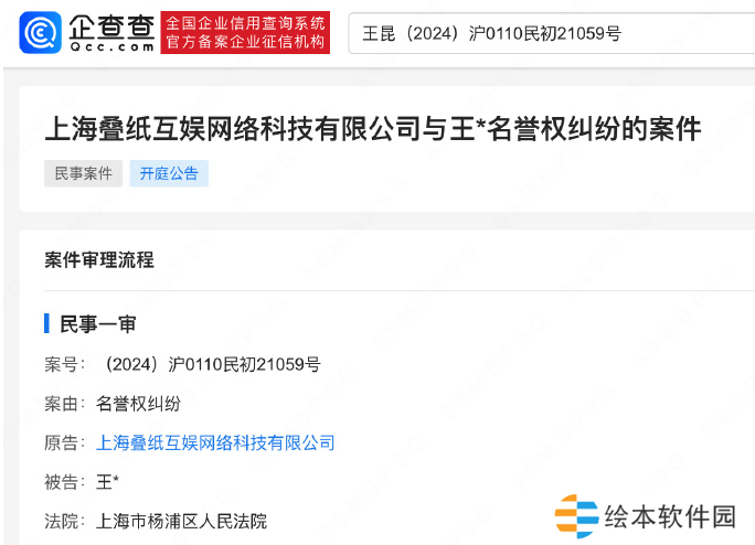 据企查查上海叠纸互娱网络科技有限公司新增一条开庭公告信息,被告为王昆(派克特本名)。预计2025年1月14日下午14:00开庭。