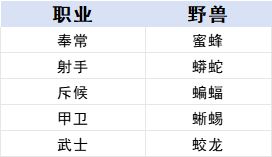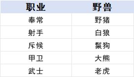 其他职业可以查看下表