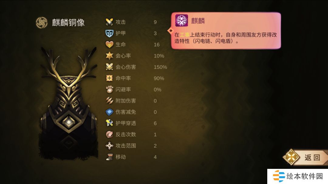 麒麟铜像由奉常+武士组合而成,麒麟铜像以辅助为主,让站在工事上的队友能够获得强力的改造特性。