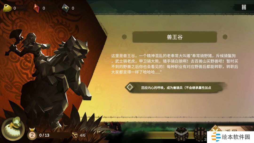仔细查看兽王谷的描述就能发现每个职业所需的野兽是什么,以奉常为例,购买了一只野猪后即可在兽王谷中进行驭兽,成为战歌大奉常。属性更强大,移动距离也更远。