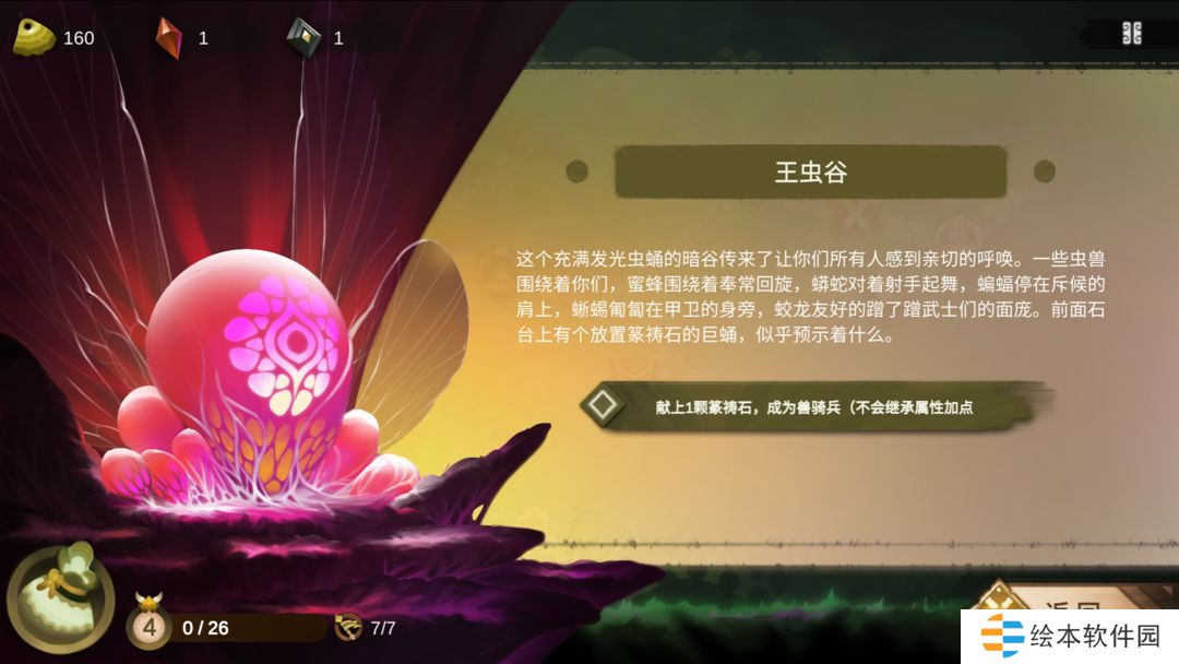 与兽王谷一样仔细查看王虫谷的描述,还是以奉常为例,当购买了一只蜜蜂,队伍中也有一位奉常时,可以在王虫谷消耗一颗篆祷石将她升级为蜂王大奉常。升级后的蜂王大奉常属性都有所增加,并且与蜜蜂一样可以直接飞跃障碍物,战力大大加强。