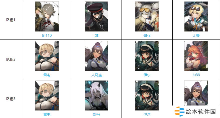 队伍1:Bf110、雏、佩-2、无畏