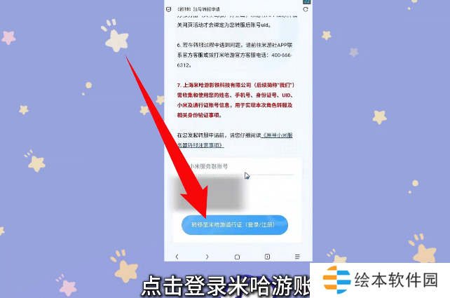 2、然后在转服申请页面滑到最下方,点击按钮登录米哈游账号;