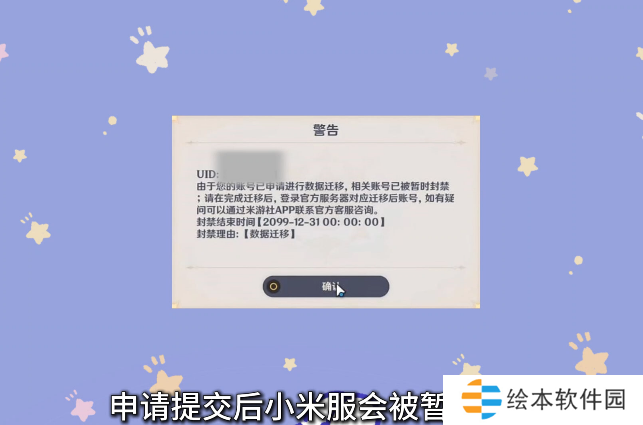 6、确认提交申请之后小米服会被暂时封禁,之后可在原神官服看看有没有转服成功。