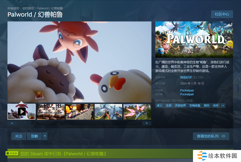 进入steam官网后搜索“幻兽帕鲁”,游戏有“学习版”但如果是为了后续更新体验和联机感受,还是推荐购买正版。