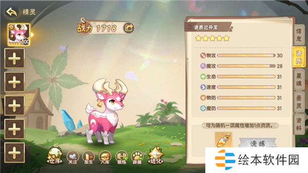 在精灵信息页,点击右侧资质,即可在资质面板内进行洗练,