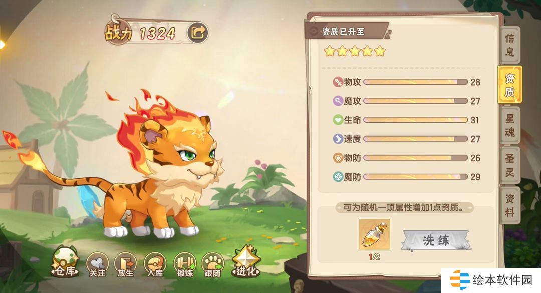 ①资质:提升资质需要资质药水,刷精灵时尽量保留高星,三星以下的建议全部放生,资质全满数值是全31,而总数值145之后需要两瓶资质药水才能提升一点(极低概率提升两点)。