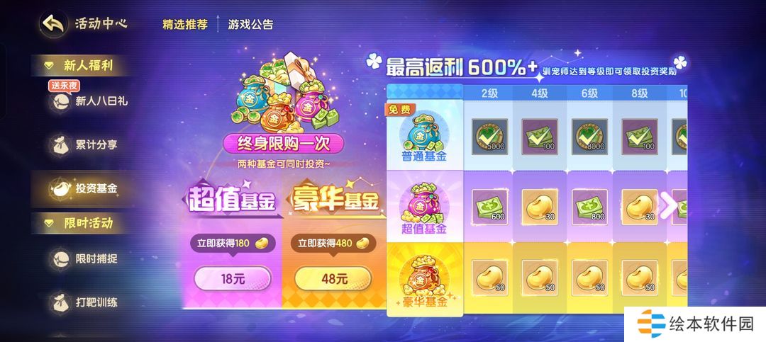 投资基金,18元档次180+190个豆,相当于翻倍,48元档次480+820个豆,相当于三倍。