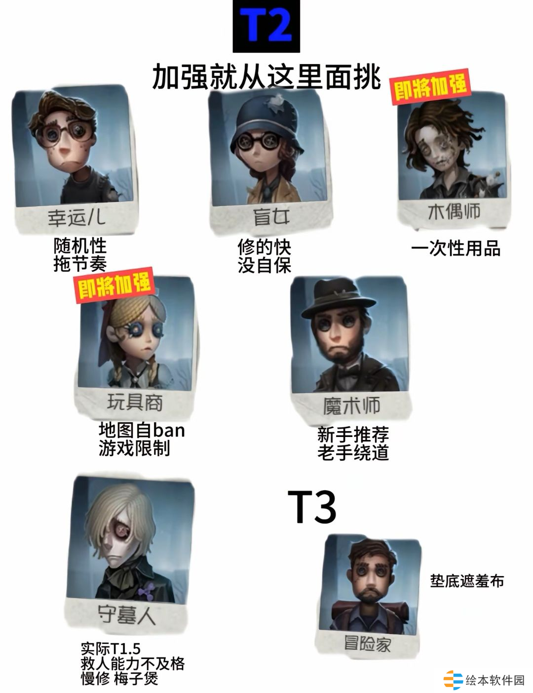 T2:即将要加强的角色都在T2里挑。