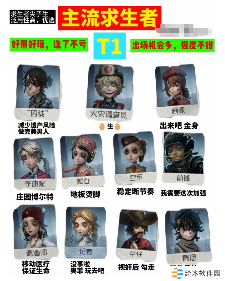 T1:求生者尖子生,泛用性比较高,可以优先选。