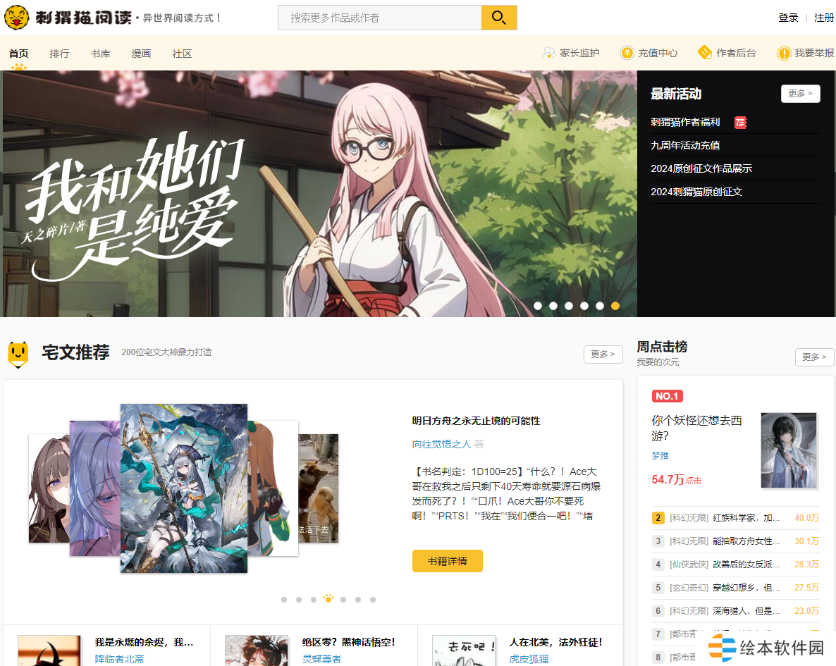 刺猬猫是国内一个同人二次元为主的小说网站。这是更适合二次元爱好者的阅读平台,其中包含了小生活漫画,社区等功能板块,用户也可以在该平台上注册成为作者,发布自己的作品。