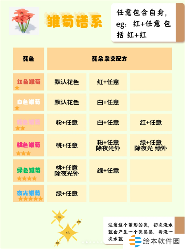 1、好友浇水能提高花朵杂交概率,4个好友最佳,加上自己一共5次浇水,浇水后亮晶晶会多小点点。