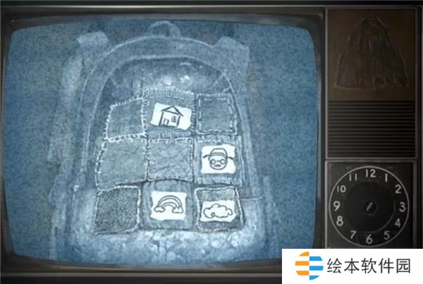 7、然后就可以进入佛像下面的门了,进门后发现只有一台显示器亮着,查看一下上面的图案很眼熟,按住图案是可以拖动的,拖动图案换一下位置到书页上的位置,电视画面开始变化,等停止变化时从电视里上的书包里拿到洋娃娃和第二个圆球。