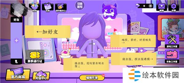 编辑形象:详尽设置,包括眉毛、耳环等,支持官方与玩家自制商品。