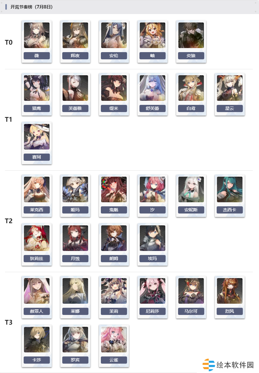 T0:最推荐养成的角色,拥有各职业中顶级的实力。