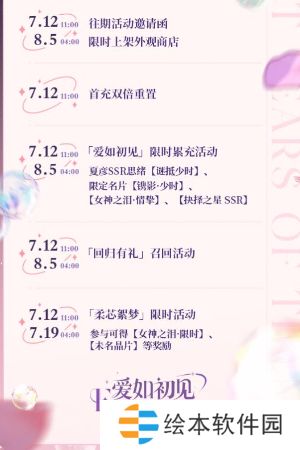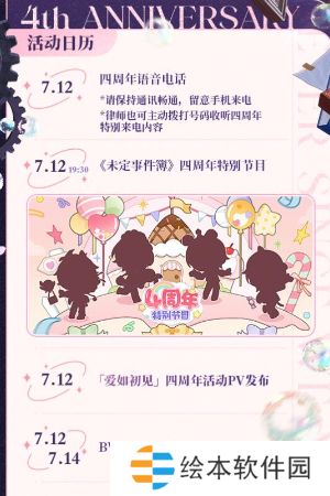 1、7月12日11:00,「爱如初见」四周年特别活动即将分阶段开启