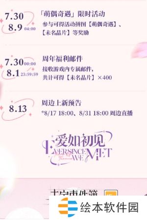 2、「爱如初见」四周年特别活动第二阶段将在7月18日开启,敬请期待!