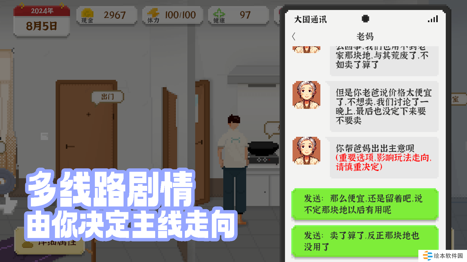 在《我独自生活》中,玩家将扮演一位从大都市辞职,选择回归南方宁静小县城的青年。在这里,玩家需要亲自规划每一天的生活,体验从零开始的独立生活。游戏不仅提供了丰富的日常活动供玩家选择,还融入了诸多真实的生活元素,让玩家在虚拟世界中也能感受到生活的酸甜苦辣。