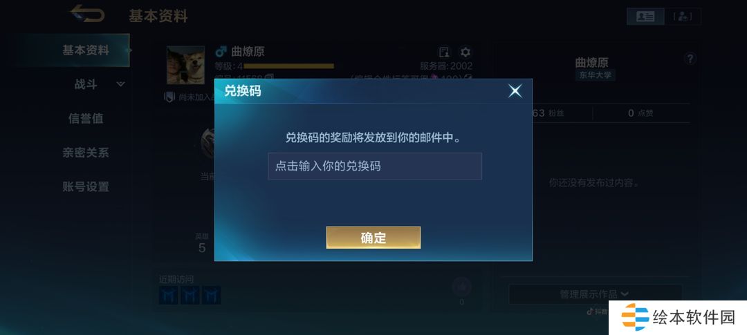 3、在弹出的兑换码窗口中,输入获取到的礼包码;