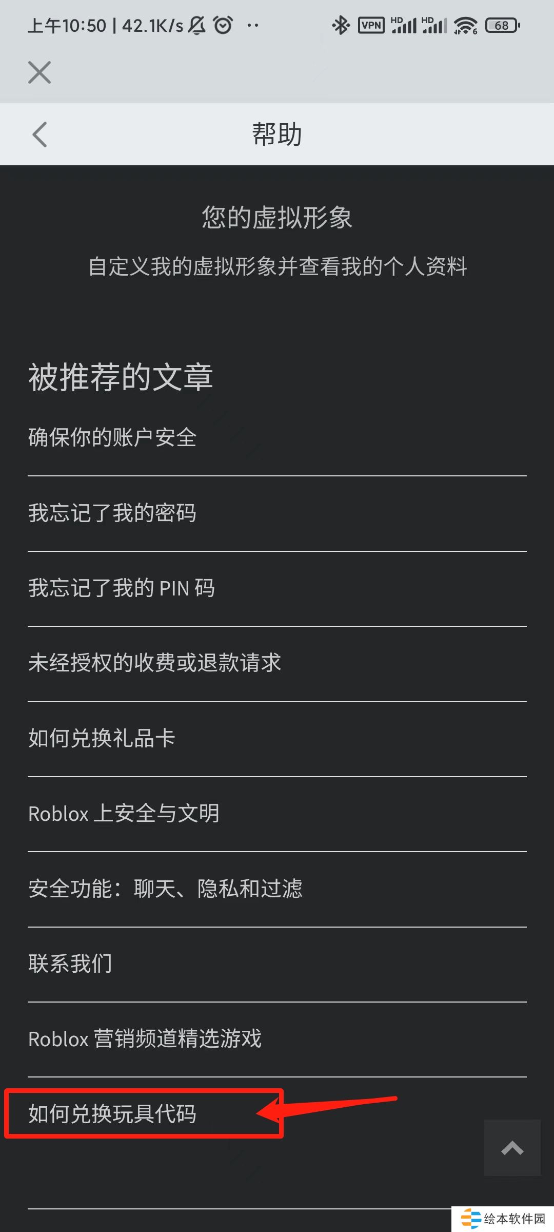 3、进入“帮助”页面后,选择最后一栏的【如何兑换玩具代码】问题。