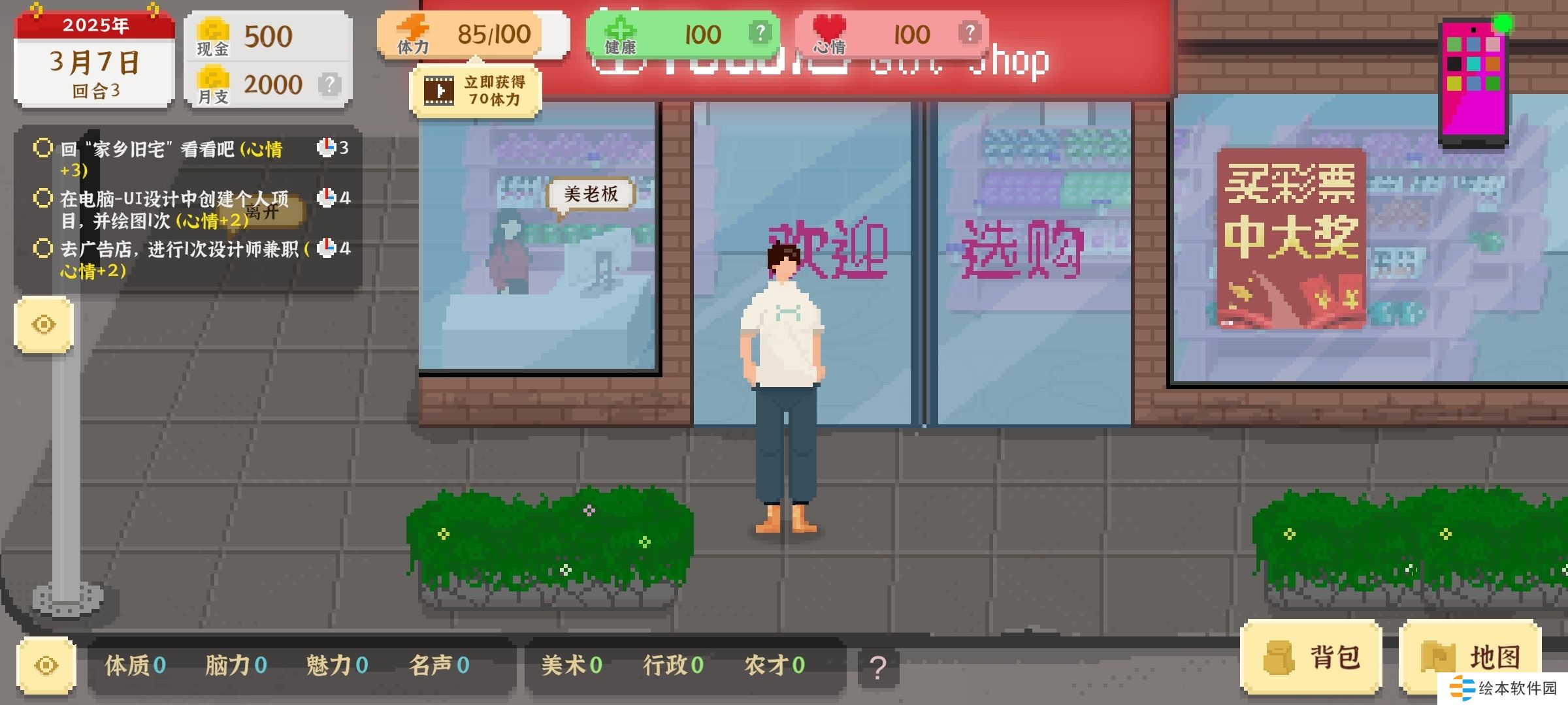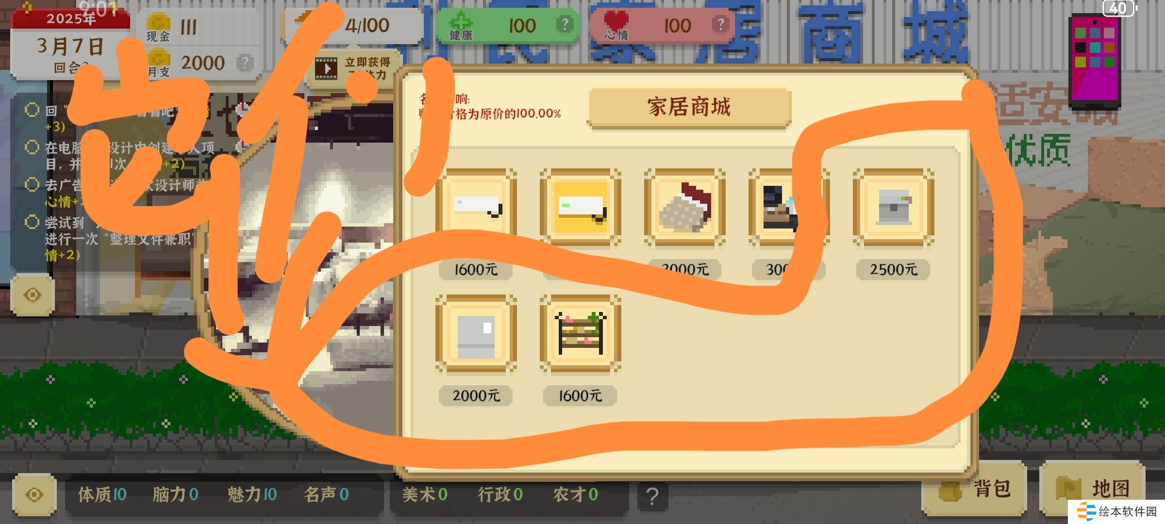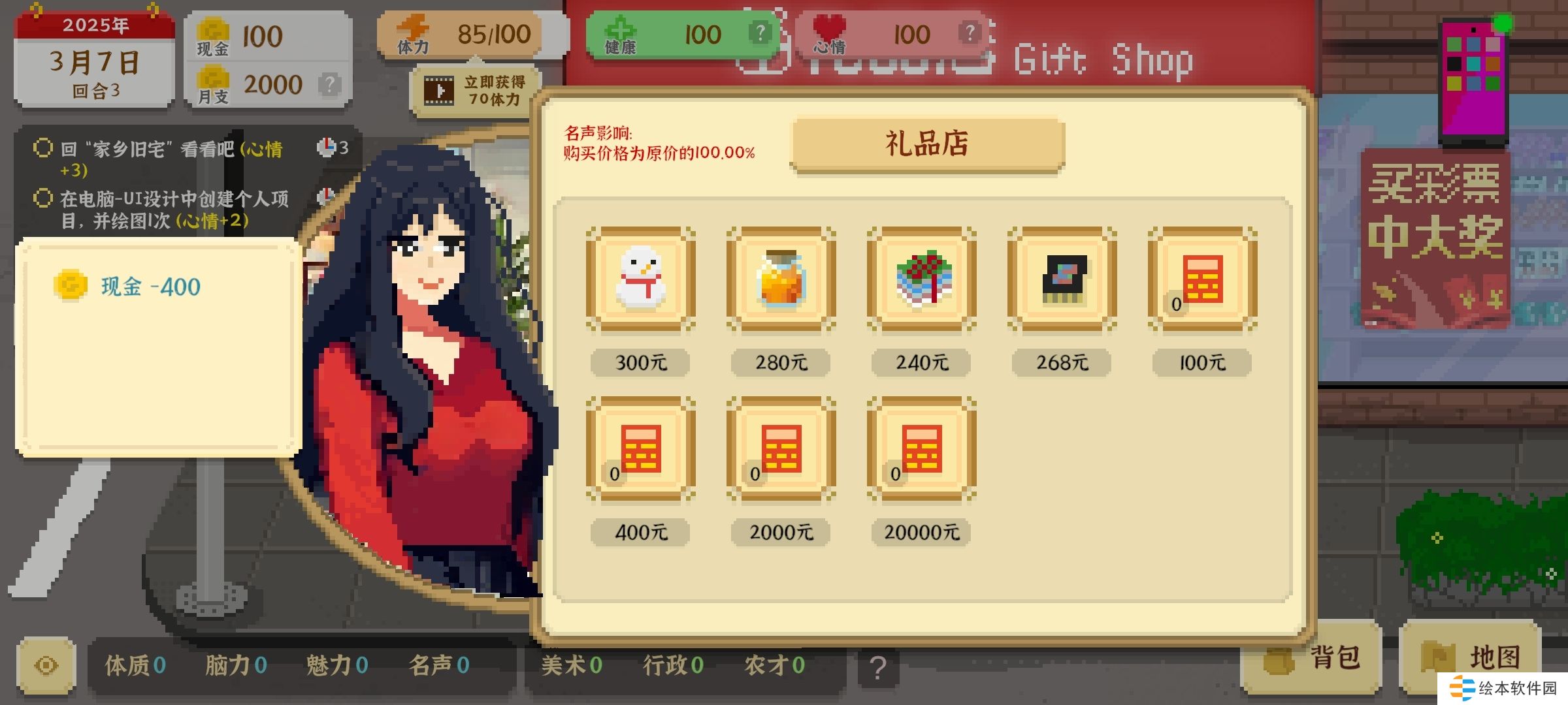 (1)网咖上网+20(2)网咖兼职陪玩+20(3)网购考公视频+20(4)网购《一本通》+20(5)熬夜玩玩手机游戏+10(6)广告店兼职设计师+20(7)考公上岸后完成林婉静的任务+20(8)完成每日小惦记+10。
