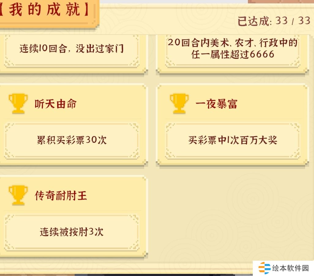 7、[新鲜的富一代]和[富起来也就两三个月]和[年少有为]和[听天由命]还有[一夜暴富]可以一起做:我玩的时候还没更新,中**的概率高,所以第一次就中了20万,紧接着第二次就中了100万,所以很轻松,但现在应该变成了阳寿赌场局。注:**在集市礼品店美老板处买。有了100万后直接到高级中学上辅导班就行了。