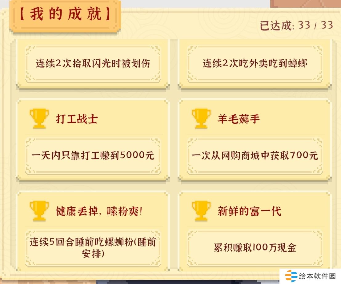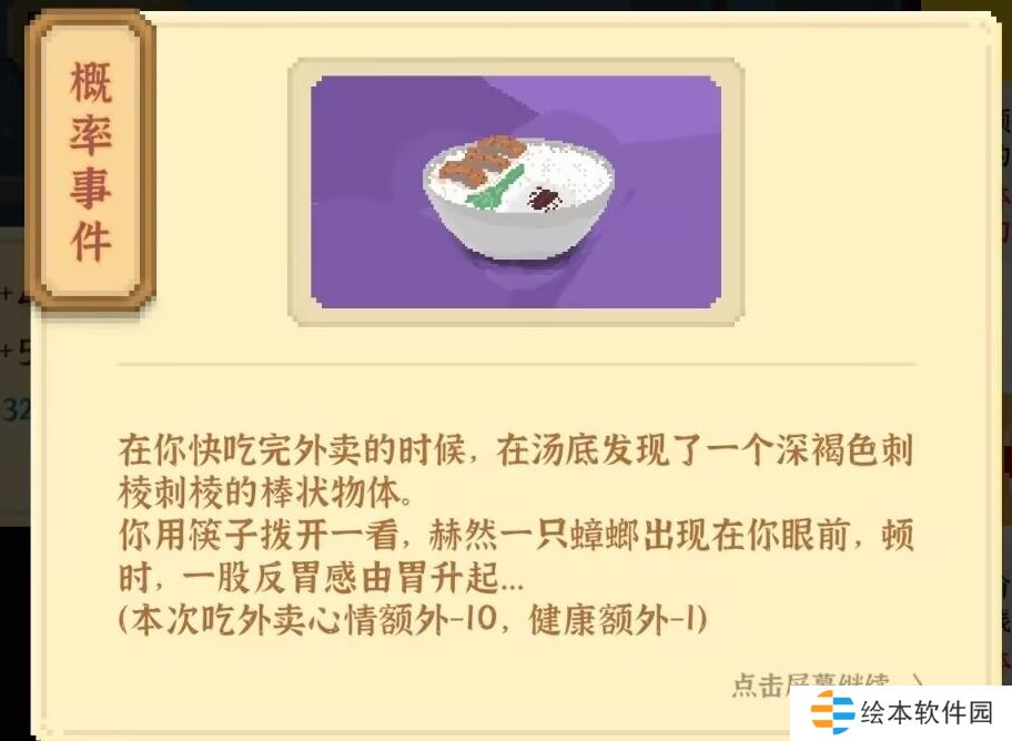 4、[大眉笔]:可以称为游戏中最难的成就,买饿团APP中的实惠经济餐,大概有1%的概率刷出蟑螂。进入下一回合后,啥也别管,直接吃实惠经济餐,没出就回档再来,大概40到50次后,就可以完成,当然这东西完全看运气,要是实在是非酋的话,就当给现实生活积福了。