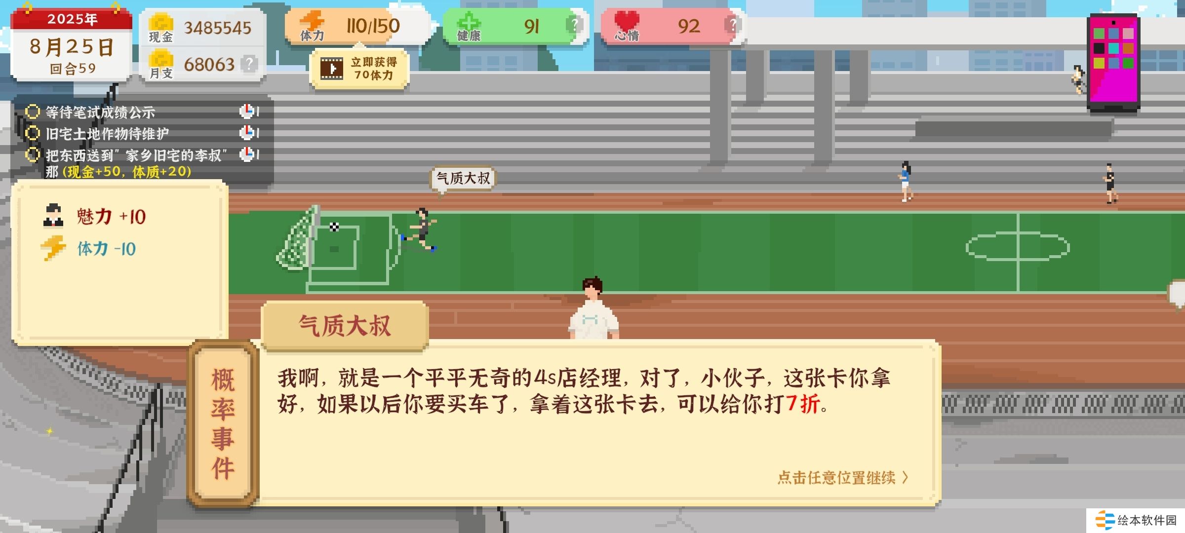 1、在体育场和气质大叔踢球概率触发