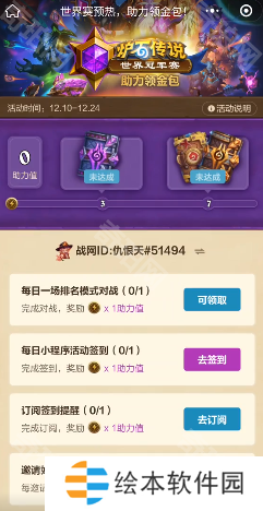 前往【炉石传说】官方微信小程序,参与助力可最多获得1个“深暗领域”卡包、1个“深暗领域”金色包和1个“胜地历险记”金色包